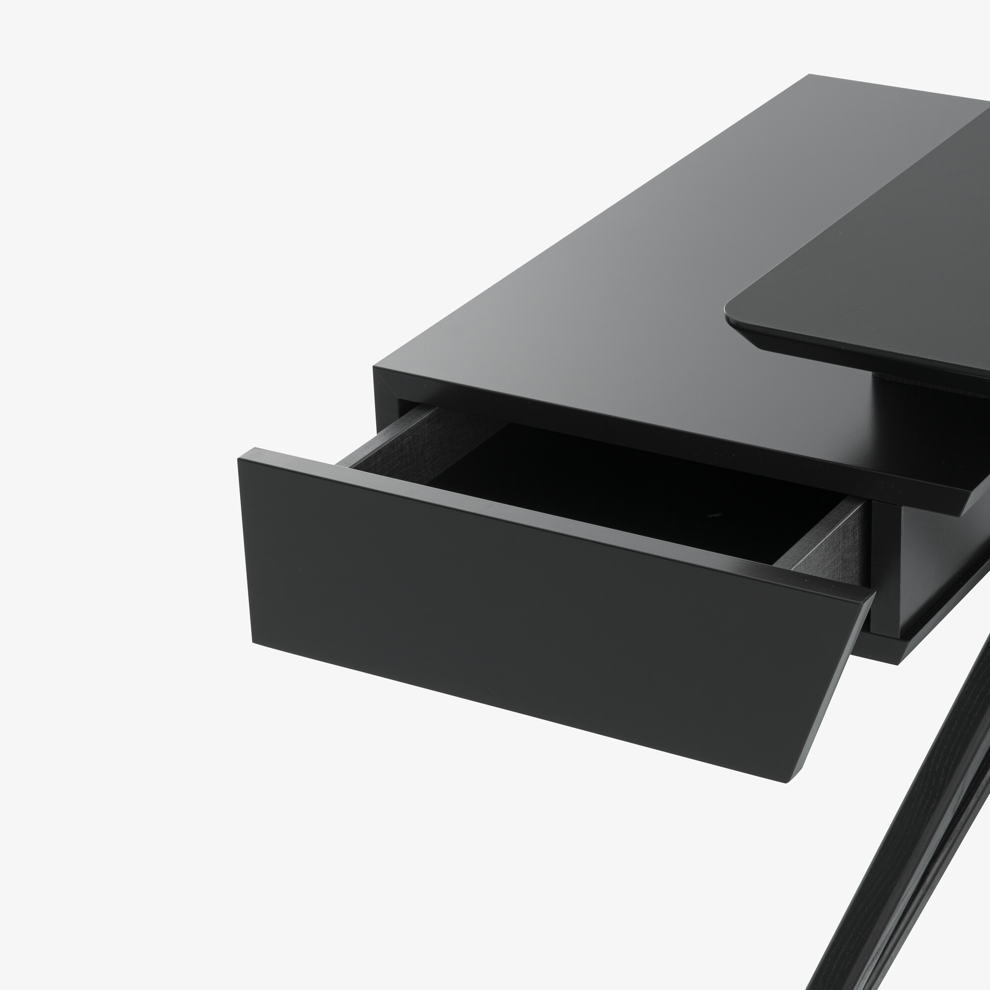 La collection Ennéa se décline en un bureau élégant alliant des matériaux nobles et des lignes sophistiquées. Son piétement en frêne massif teinté noir apporte stabilité et caractère, tandis que le coffre foldé plaqué frêne teinté noir, équipé d’un tiroir à gauche et d’une prise de main discrète à droite, conjugue praticité et design épuré.