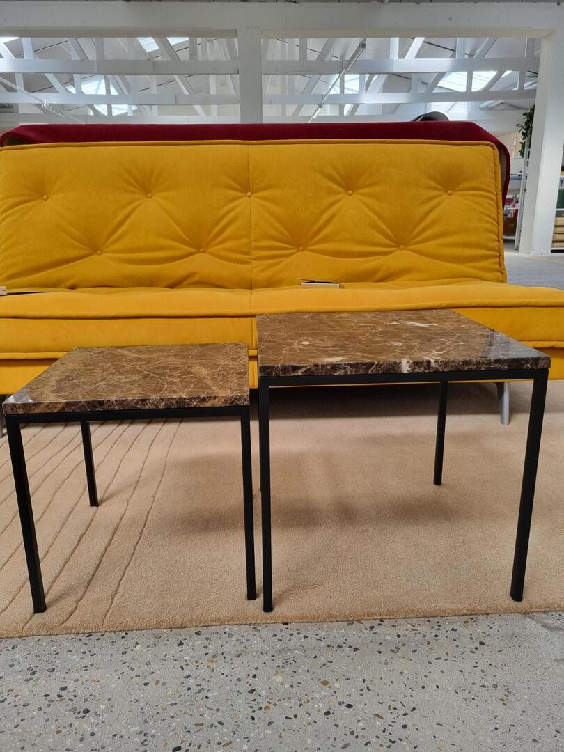 Ces tables sont vendues séparément, elles sont toutefois conçues pour pouvoir être combinées, le plateau de la table convexe passant par dessus le plateau de la table concave.