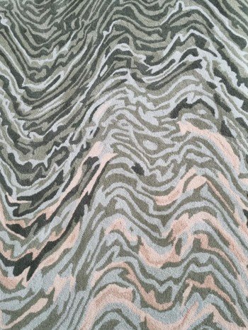 Tide, la marée, est clairement représentée sur le motif de ce tapis. On a l’impression de voir le reflux des vagues vers la mer. Tapis 100 % laine, tufté main. Différentes hauteurs de tuft 12 – 14 – 16 mm. Pas d’équivalence coloris.
